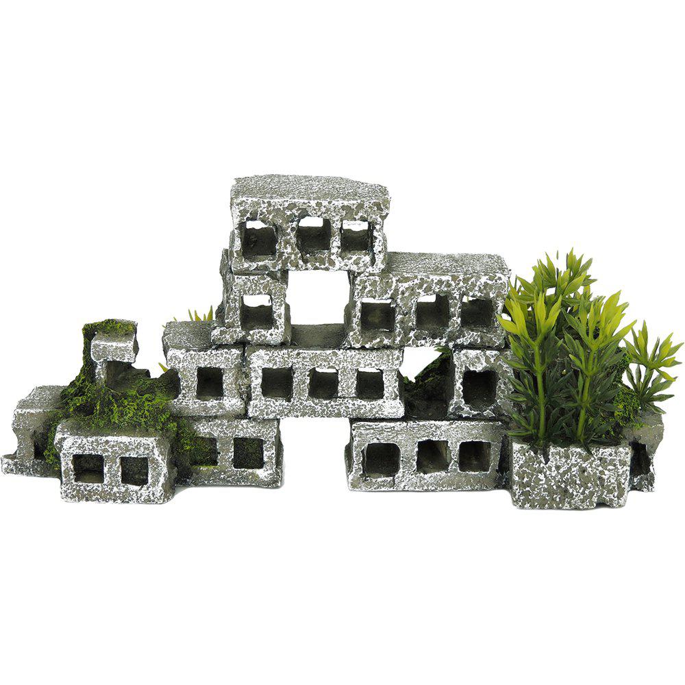 Ihana tiili & kasvit yhdistelmä koriste akvaarioon/terraarioon Blocks With Plants M Mitat 212x62x100mm