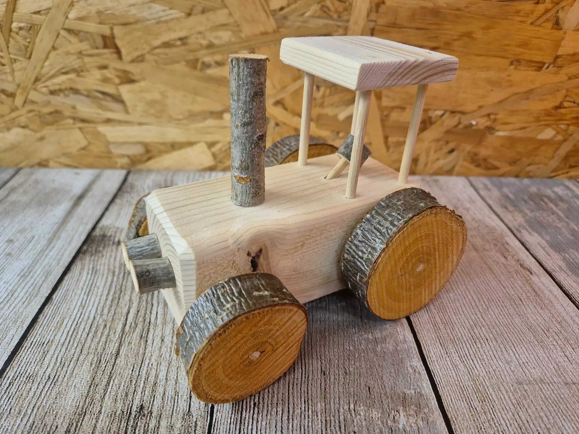 Jyrsijän puinen traktori. Käsintehty Suomessa. Mitat noin 13 x 10 x 11 cm. Tuotteessa käytetään luonnon puuta, joten tuotteissa voi olla pieniä väri- ja muotoeroja.