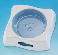 Keraaminen kaunis kuppi kissalle. Kupin mitat noin 13 x 13 x 2,5 cm. Väri sininen-valkoinen.