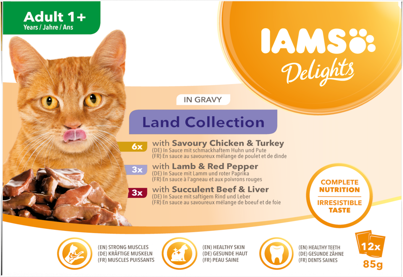IAMS Delights on 100 % täydellistä ja tasapainoista ruokaa aikuisille kissoille.Täydellinen ravinto ja vastustamaton maku.