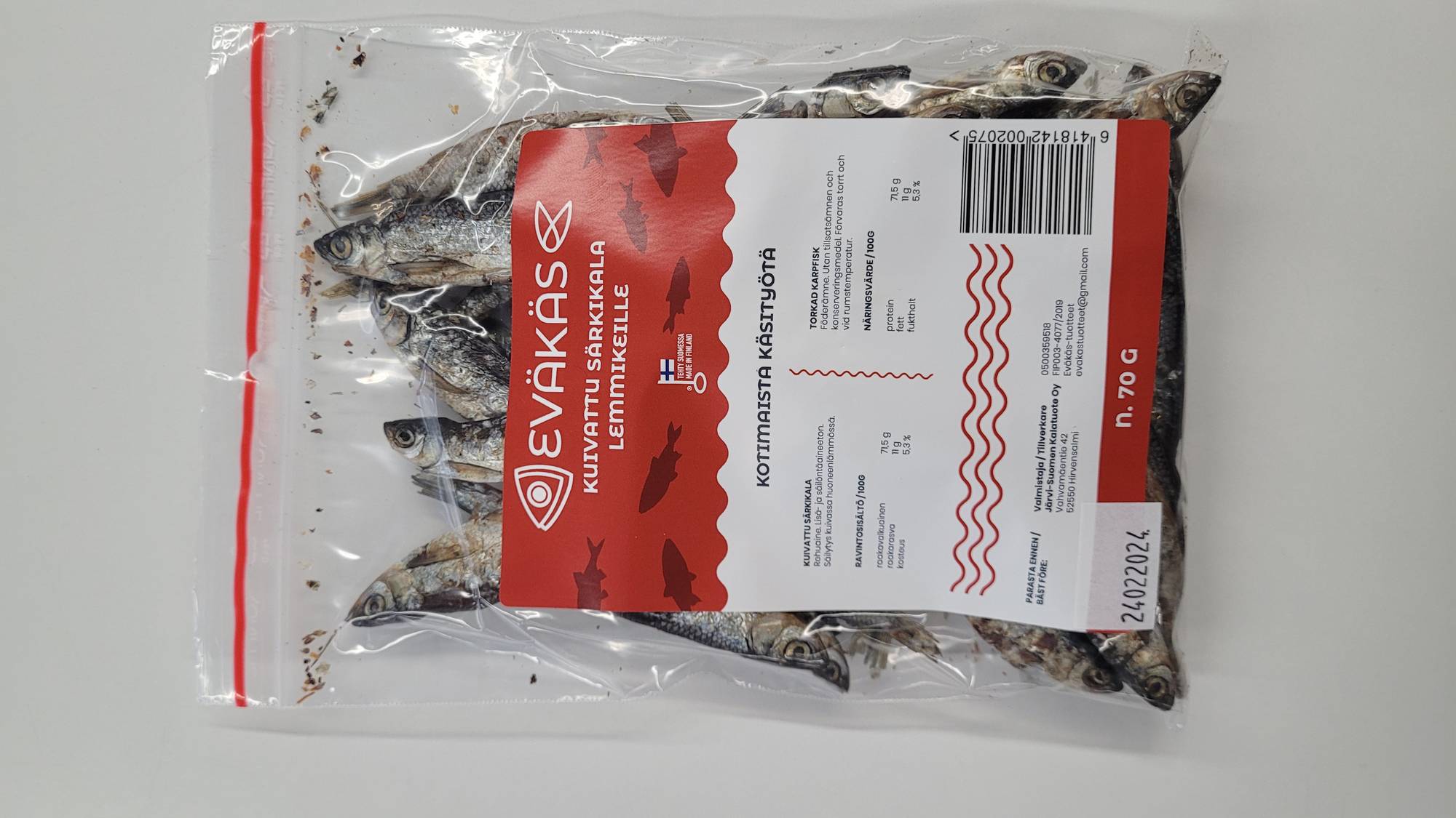 100 % suomalainen särkikala (mm. särki, salakka, lahna). Lisä- ja säilöntäaineeton sekä ekologinen. Kuivattu elintarvikelaatuisesti Hirvensalmella. Maistuva herkku lemmikeille. Pakattu... Lue lisää