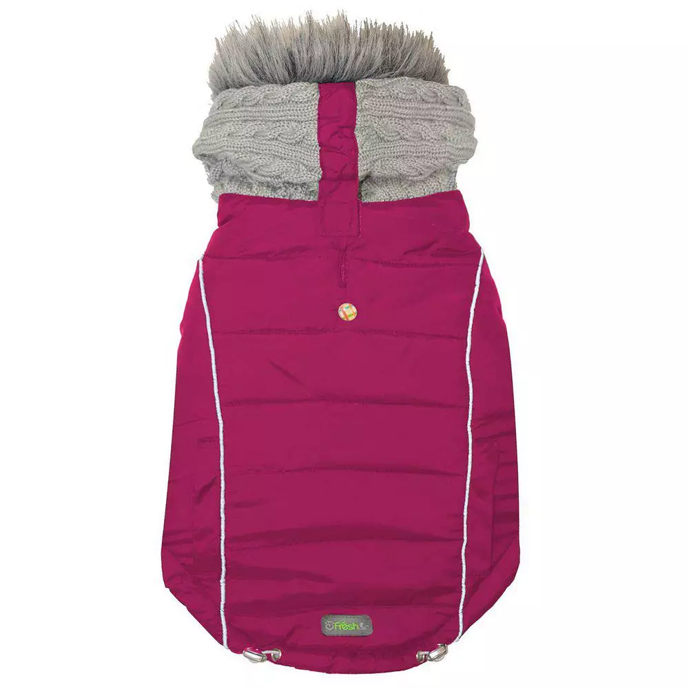 Tämä trendikäs malli sisältää neulotun hupun, jossa on turkisreunus, heijastinyksityiskohtia ja joustavat nauhat hyvän istuvuuden takaamiseksi.