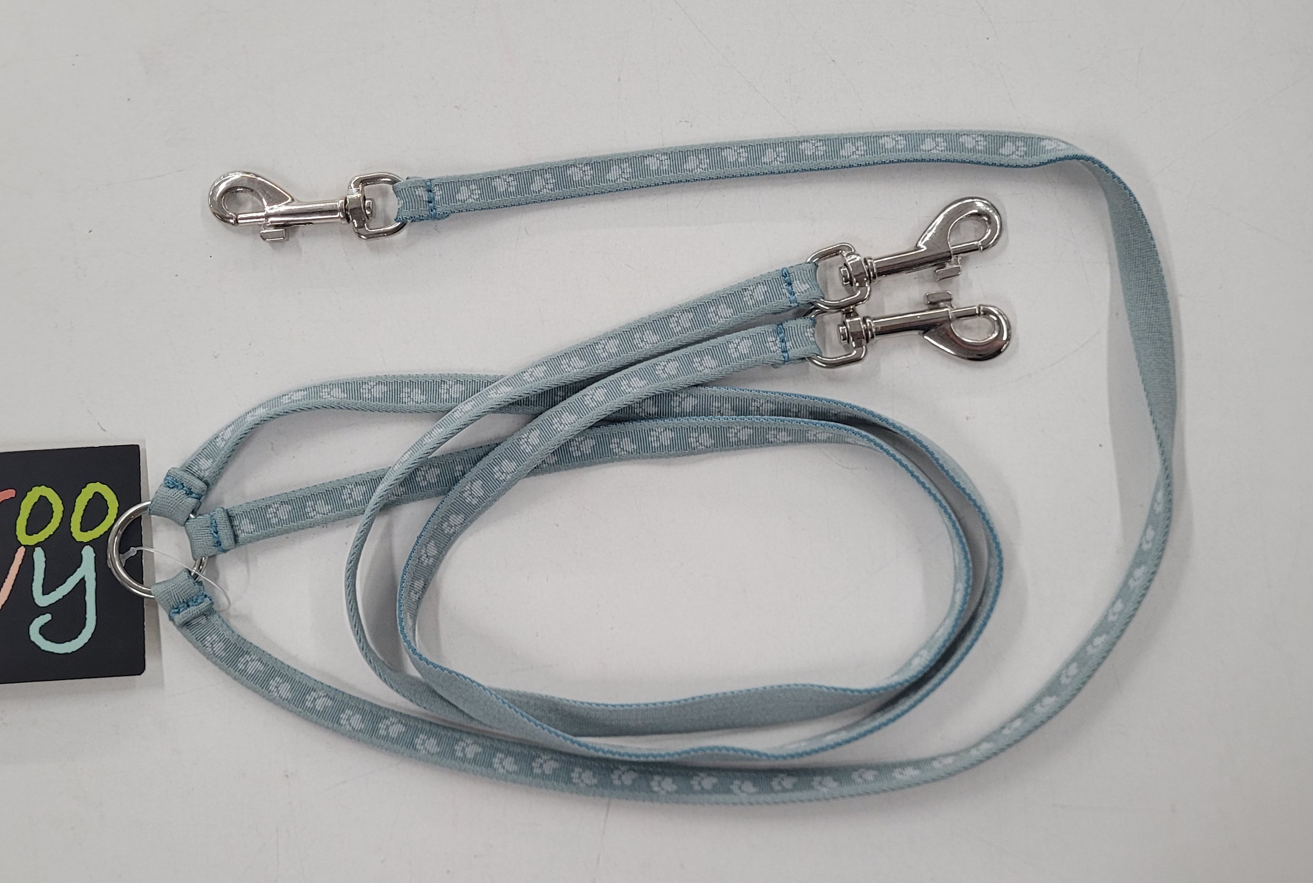 Groovy hihnan jakaja. Jakaa hihnan kolmeen (3) osaan. Pituus 60cm. Jokaisessa pieni pistolukko. Sopii hyvin pienille koirille tai kissoille.