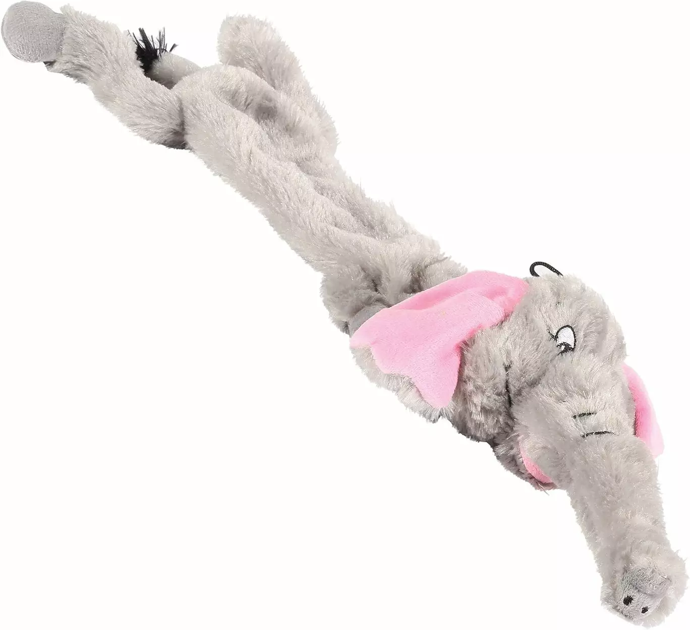 Tämä lähes täytteetön Wild Elephant Norsu -rapinalelu on upeasti suunniteltu lelu, jossa on pitkä, täytteetön vartalo rapinalla ja täytetty pää, jossa on vinkuääni.