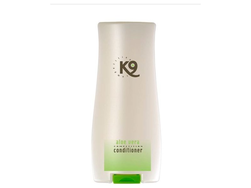 Ohjeet: Aloita pesemällä K9 ALOE VERA COMPETITION SHAMPOOLLA. Levitä hoitoaine puristuskuivattuun turkkiin ja hiero hellävaraisesti.