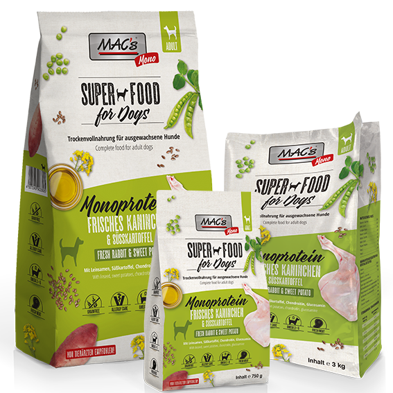 Mac's Superfood Monoprotein kani kuivaruoka on allergiselle koiralle toiminut parhaiten.