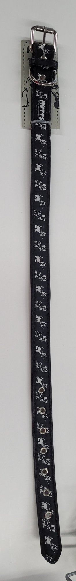 Mutts eli Kamut sarjakuvan hahmot painettuna 66cm pitkään tekonahka kaulapantaan. Taustaväri musta ja kuvio valkoinen.