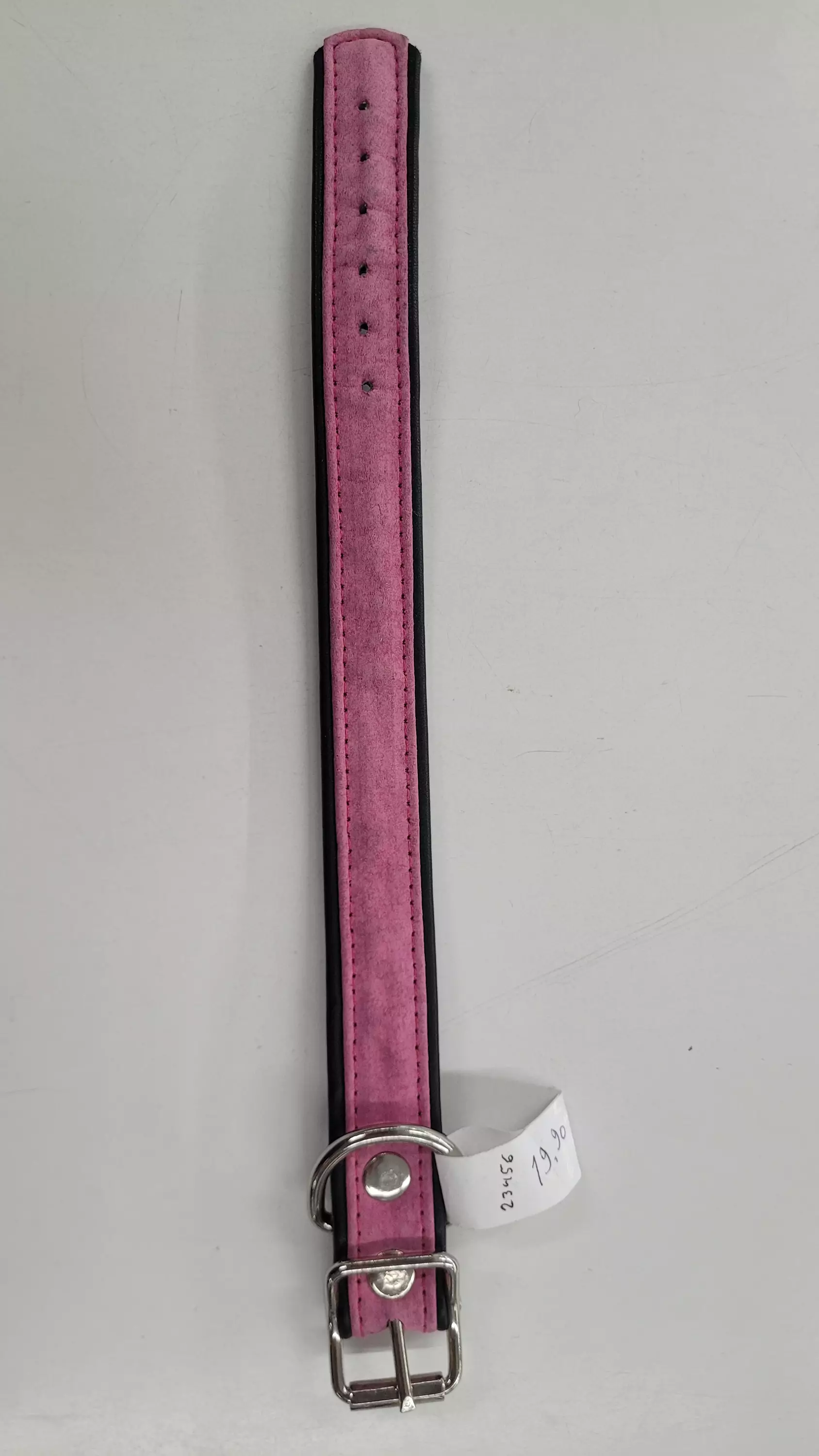 Nahkapanta Pinkki nahka päällys Kokonaispituus 32 cm Kaulanympärys: 23-30 cm Pannan leveys n. 28 mm