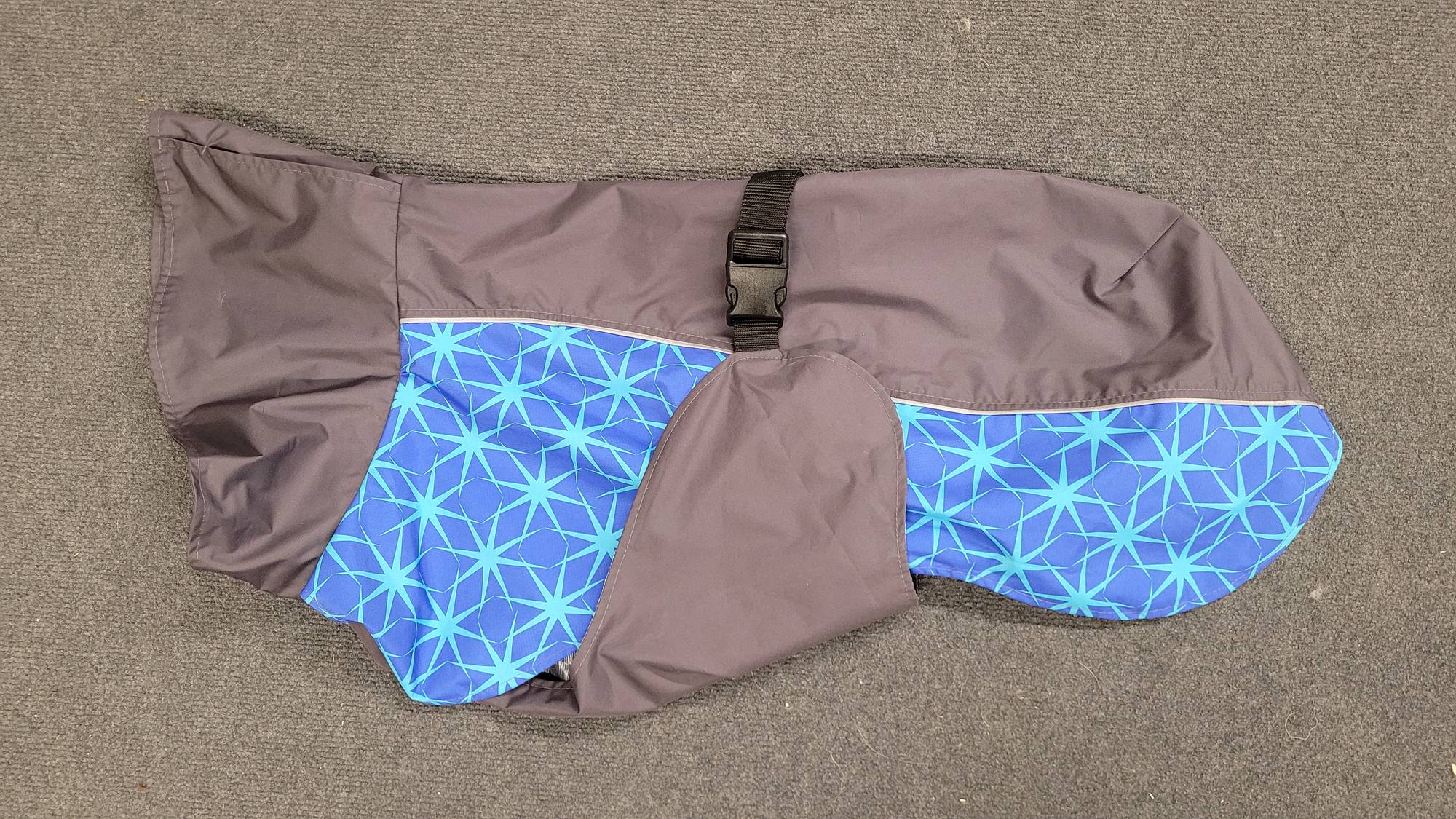 Sadetakin koko 55cm on koiran selänpituus. Takki kiinnitetään selkäpuolelta pikalukolla ja lisäpysyvyyttä tuovat takaosan kuminauhat. Takki on suunniteltu niin, että sen takaosa jatkuu... Lue lisää