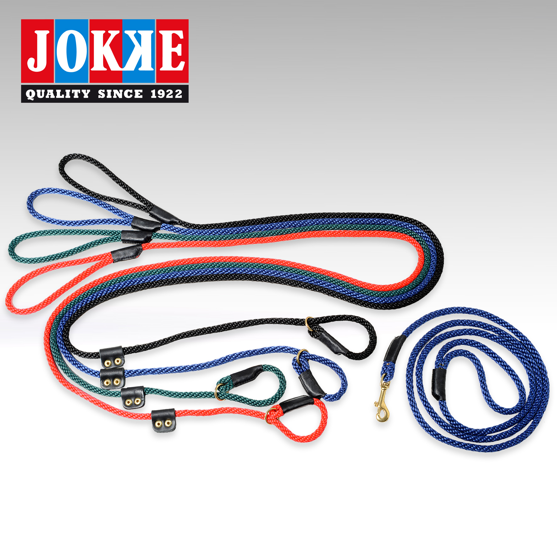 Rosso pyöreä&pehmeä noutajantalutin nahkavahvikkeilla 190 cm x 10 mm.